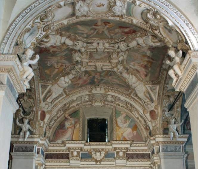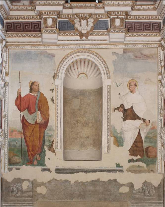 ” 3 agosto 1568… in p( rima) vi ਠS. Jacopo cura principal nella quale se vi stano due religiosi omaneti. Duoi celebrati, uno parochiano l”altro coaiuto et doi gnesi (chiese) se vi contiene i cappelle con XI altari et uno scuriolo et tutto i bellissimo volta; pur ਠsenza beneficio. Il tutto dal levante vi cohra Zibid distat la mità d”un miglio; dal megio dì ਠPioltino nella sudetta distanza, ad occidente… dista un migliarolo. Vi ਠuna belliss sacristia co” il suo campanile sop il quello vi sono due ottime campane et ha la sudetta cura cinq terre qual qui sottoscritte: